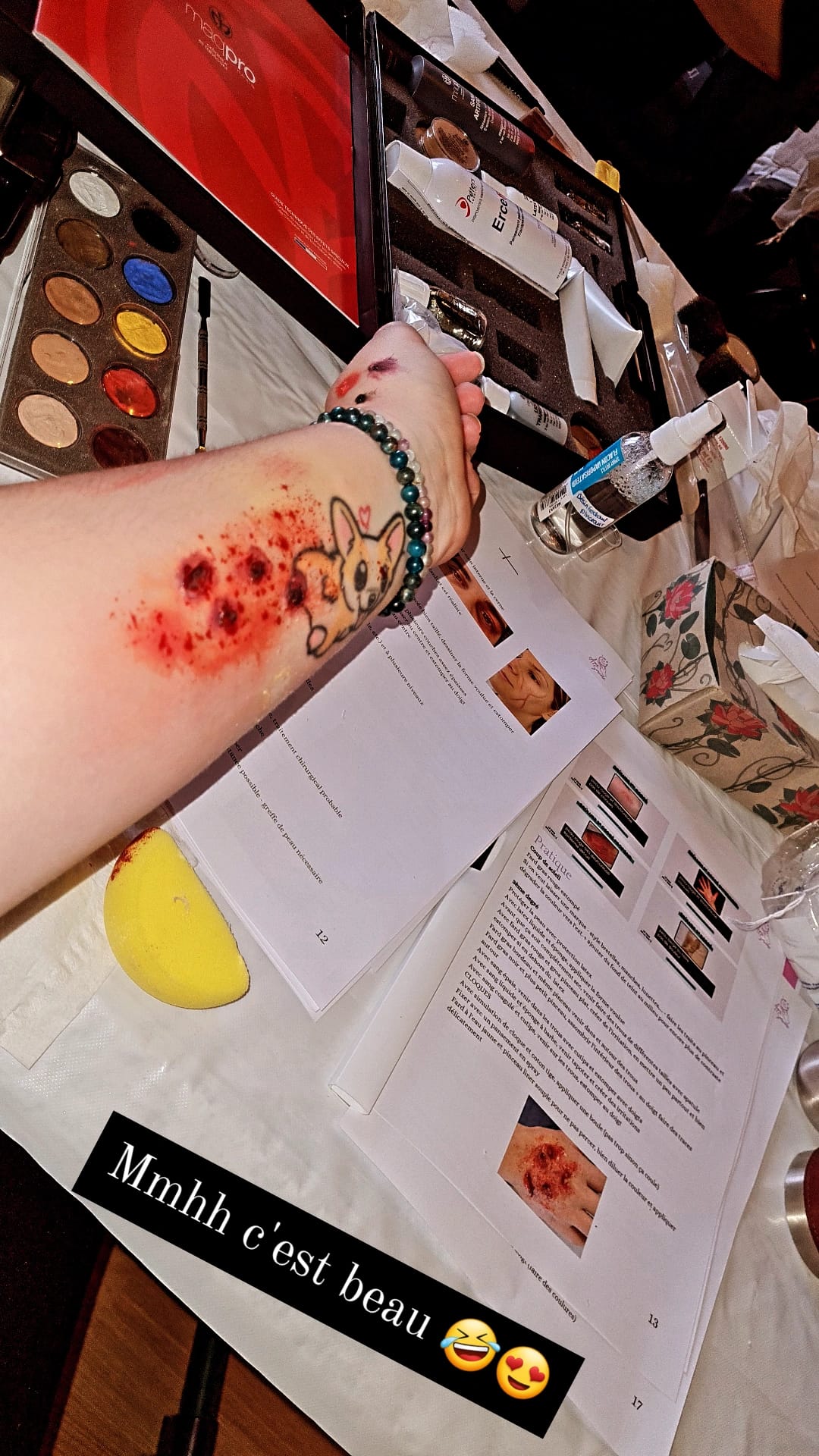 Ci-dessous quelques images d'un cours sur mesures sur les effets spéciaux (fausses blessures)
